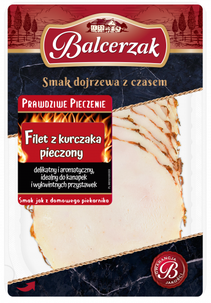 Zartes, gebratenes Hähnchenbrust-Filet von Balcerzak - perfekt für schnelle Mahlzeiten, Sandwiches oder als Snack. Bereits fertig zubereitet und sofort verzehrfertig.