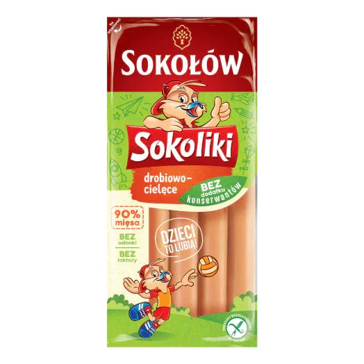 Sokołów SA to renomowany polski producent mięsa z siedzibą w Sokołowie Podlaskim. Te Sokoliki Parówki (Bockwurst) zostały opracowane specjalnie dla dzieci i rodzin. Składają się z 90% mięsa, w tym 85% kurczaka i 5% cielęciny, a także skrobi ziemniaczanej, soli, aromatów, przypraw i ekstraktów przypraw. Zawierają 186 kcal i 15,5 g białka na 100 g, co czyni je dobrym źródłem białka. Wygodne opakowanie 140 g idealnie nadaje się na posiłek. Idealne do gotowania w gorącej wodzie, smażenia na patelni lub grillowania. Idealne z pieczywem, ziemniakami, frytkami lub jako przekąska. Przechowywać w temperaturze od +1°C do +6°C. Po otwarciu przechowywać w lodówce. Z Polski – jakość Sokołowa!