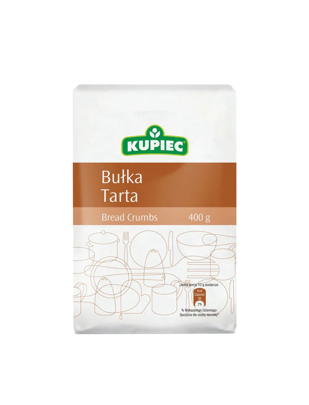 Klasyczna polska bułka tarta (Bułka Tarta) od Kupca w wygodnym opakowaniu 400 g. Idealna do panierowania mięs, ryb, warzyw i wielu innych dań kuchni polskiej i międzynarodowej. Delikatna bułka tarta zapewnia chrupiącą, złocistobrązową skórkę.