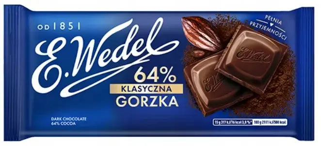 E. Wedel to jedna z najbardziej znanych i tradycyjnych marek czekolady w Polsce, z ponad 170-letnią historią. Od 1851 roku nazwa Wedel jest synonimem najwyższej jakości, rzemieślniczej perfekcji i innowacyjnych kreacji smakowych. Wykorzystując wyselekcjonowane składniki i sprawdzone receptury, LOTTE Wedel Sp. z o.o. produkuje czekolady, które zachwycają pokolenia koneserów. Marka łączy tradycję z nowoczesnymi trendami smakowymi i jest symbolem polskiego kunsztu czekoladowego.