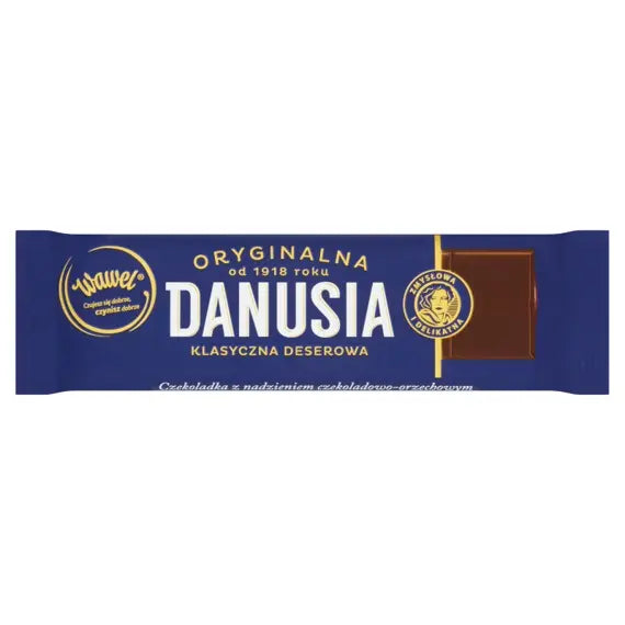 Czekolada Danusia to klasyka z romantyczną historią. Słynna czekolada nadziewana, której smak nie zmienił się od 100 lat, kryje w sobie czekoladowo-orzechowe nadzienie otulone wykwintną czekoladą Wawel. Ponadczasowa rozkosz na wyjątkowe chwile.