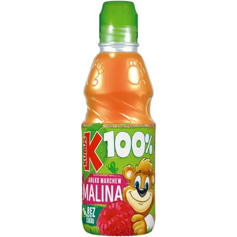 Kubus Go! Jabłko-Malina-Marchewka to popularny polski sok warzywno-owocowy. Połączenie marchewki, malin i jabłek jest idealnie zbilansowane. Idealny dla dzieci – pyszny i zdrowy, do szkoły – jako przekąska w połowie śniadania, na wycieczki – praktyczna butelka z dzióbkiem sprawia, że jest to zdrowe drugie śniadanie – pełne witamin, lub w podróży – idealny do zabrania ze sobą. Z zaledwie 48 kcal na 100 ml (144 kcal na butelkę) to stosunkowo niskokaloryczny wybór. Wykonany z 35% przecieru marchewkowego, 4% przecieru malinowego i 2% przecieru jabłkowego – bogaty w owoce i warzywa! Bogaty w witaminy A, C, witaminy z grupy B i E – wspierający wzrok, odporność i rozwój! Niezastąpione źródło błonnika – dobre dla trawienia! Bez konserwantów – naturalny i zdrowy! Praktyczna butelka z dzióbkiem jest idealna dla dzieci! Niezbędnik dla rodzin dbających o zdrowie!