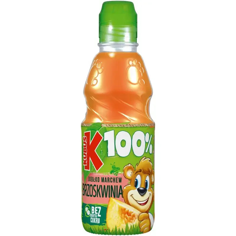 Kubus Go! Brzoskwinia-Jabłko to popularny polski sok warzywno-owocowy. Połączenie marchewki, brzoskwiń i jabłek jest idealnie zbilansowane. Idealny dla dzieci – pyszny i zdrowy, w podróży – wygodna butelka 300 ml, do szkoły – jako zdrowa przekąska – z witaminami A i C, lub dla całej rodziny – wszyscy kochają Kubusa! Z zaledwie 49 kcal na 100 ml (147 kcal na butelkę) to stosunkowo niskokaloryczny wybór. Wykonany z 28% przecieru marchewkowego, 11% przecieru brzoskwiniowego i 8% przecieru jabłkowego – bogaty w owoce i warzywa! Bogaty w witaminy A i C – wspierające układ odpornościowy i wzrok! Zawiera cenny błonnik – dobry dla trawienia! Bez konserwantów – naturalny i zdrowy! Niezbędny dla rodzin dbających o zdrowie!