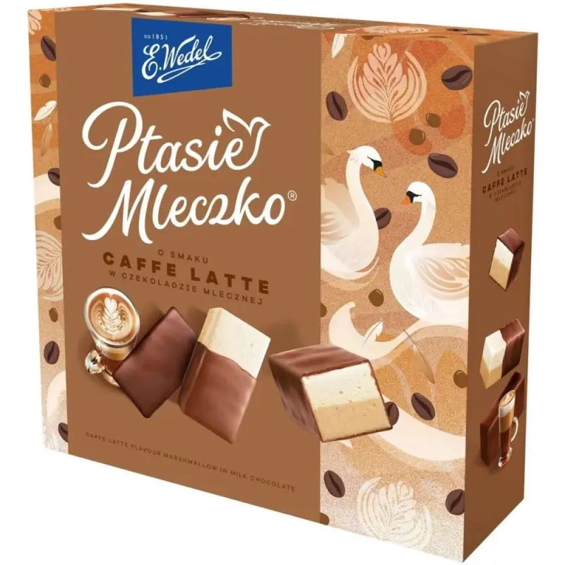 Wedel to jedna z najbardziej tradycyjnych i znanych marek czekoladowych w Polsce. Ptasie Mleczko to legendarny polski przysmak z pianką marshmallow, uwielbiany od pokoleń. Ta odmiana Caffe Latte łączy klasyczne, delikatne nadzienie z pianką marshmallow i aromatyczny smak Caffe Latte, a całość oblewa 31% mlecznej czekolady. Klasyka z nowoczesnym akcentem.