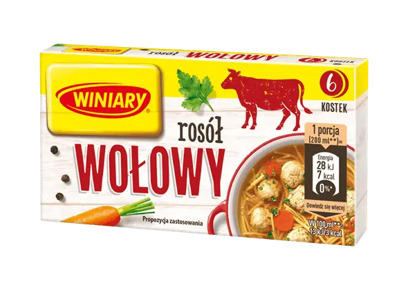 Winiary ist eine der bekanntesten und traditionsreichsten Lebensmittelmarken in Polen. Hergestellt von Nestlé Polska S.A., steht Winiary seit Generationen für höchste Qualität und authentischen Geschmack. Die Rosół-Brühe ist ein Klassiker der polnischen Küche und darf in keinem Haushalt fehlen. Mit 3% Rindfleischextrakt und sorgfältig ausgewählten Gewürzen bietet sie einen vollmundigen Geschmack.