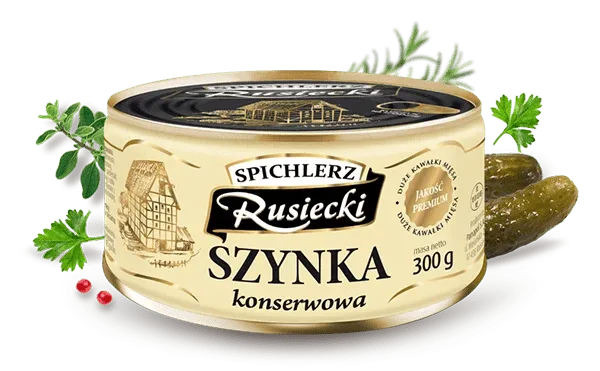 Szynka konserwowa od Spichlerza Rusieckiego to wyśmienita szynka konserwowa, produkowana w 80% z wysokiej jakości wieprzowiny. Ta delikatna szynka konserwowa idealnie nadaje się na zimne przekąski, kanapki lub jako wytrawny dodatek do różnych dań. Wyprodukowana w Polsce i starannie przetworzona.