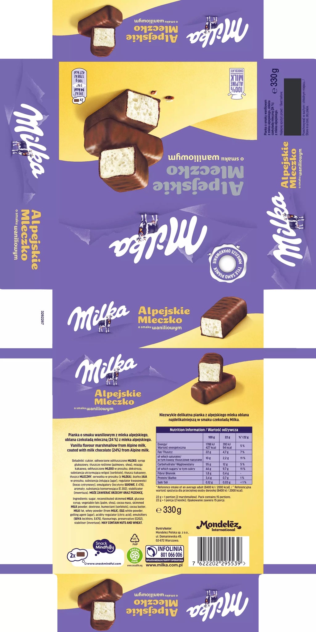 Milka Alpejskie Mleczko Waniliowe 330g - Vanille-Schaumzucker mit Alpenmilch-Schokolade