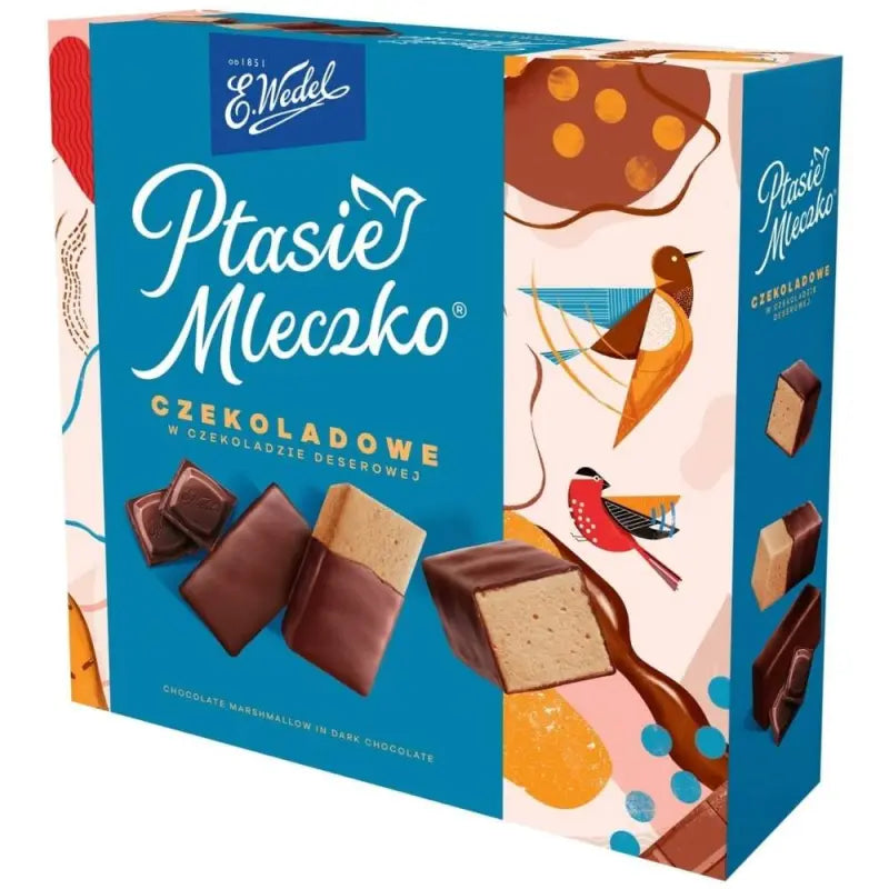 Wedel to jedna z najbardziej tradycyjnych i znanych marek czekoladowych w Polsce. Ptasie Mleczko to legendarny polski przysmak z pianek marshmallow, uwielbiany od pokoleń. Ta odmiana czekolady łączy w sobie klasyczne, delikatne nadzienie marshmallow z intensywnym smakiem czekolady i jest oblana 28% gorzkiej czekolady (minimum 47%). Klasyk dla miłośników czekolady.