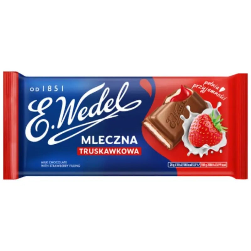 Erleben Sie die perfekte Harmonie aus zartschmelzender Milchschokolade und fruchtiger Erdbeerfüllung. Die E. Wedel Erdbeerschokolade vereint die traditionelle Qualität der legendären polnischen Schokoladenmarke mit dem süß-fruchtigen Geschmack sonnengereifter Erdbeeren. Jeder Biss ist ein Genusserlebnis, das süße Schokolade mit fruchtiger Frische verbindet – perfekt für alle, die außergewöhnliche Geschmackskombinationen lieben. Ein absoluter Bestseller!