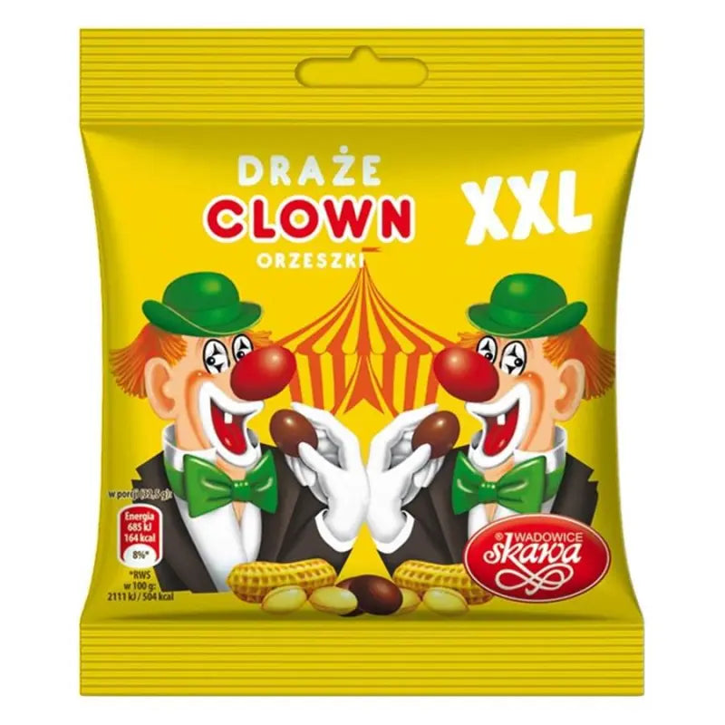 Köstliche Erdnuss-Dragees von Skawa aus Wadowice in der XXL-Packung. Diese knusprigen Dragees mit 38% gerösteten Erdnüssen sind mit einer süßen Zuckerhülle überzogen und bieten einen authentischen Erdnussgeschmack. Die Clown-Serie ist ein beliebter Klassiker – perfekt als süßer Snack für unterwegs oder zum Naschen zwischendurch.