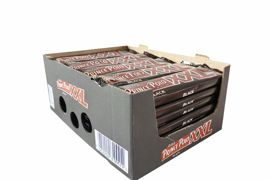 Der Prince Polo XXL Black ist ein köstlicher Waffelriegel mit intensivem Schokoladengeschmack. Die knusprigen Waffelschichten sind mit einer cremigen Füllung verfeinert und mit edler Zartbitterschokolade überzogen. Mit 45g bietet die XXL-Variante noch mehr Genuss für echte Schokoladenliebhaber.