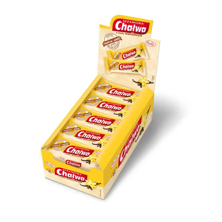 Unitop Chałwa sezamowa o smaku waniliowym (Sesam-Halva mit Vanillegeschmack) - traditionelle orientalische Süßigkeit aus 49% Sesampaste mit natürlichem Vanillearoma. 15er Vorratspack für Familie, Büro oder Vorrat!
