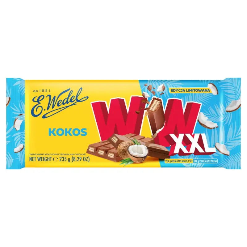 Wedel ist eine traditionsreiche polnische Schokoladenmarke mit über 170 Jahren Erfahrung in der Herstellung feinster Schokoladenspezialitäten. Das Unternehmen ist bekannt für seine hochwertigen Schokoladenprodukte und innovativen Waffelkreationen. Wedel verbindet traditionelle Handwerkskunst mit höchsten Qualitätsstandards und verwendet nur ausgewählte Zutaten für seine Schokoladenkreationen. Die XXL-Serie bietet besonders großzügige Portionen für echte Genießer.